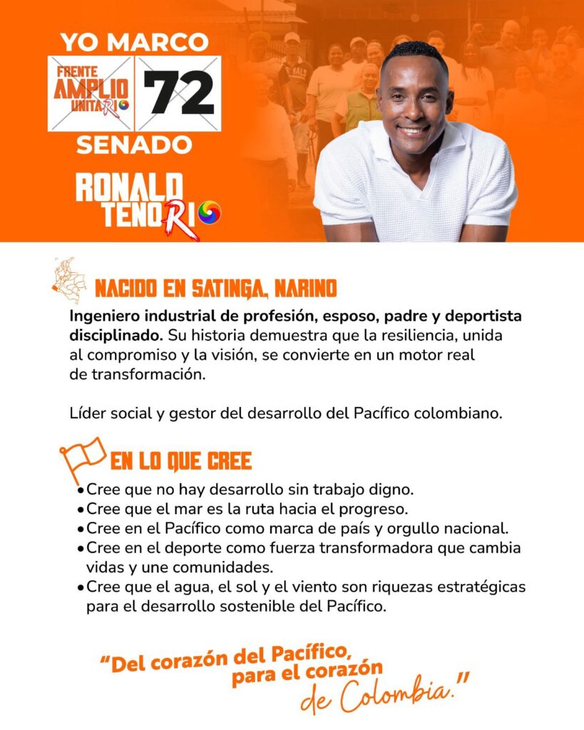 Detrás del candidato del Frente Amplio Unitario (No. 72), hay una historia de resiliencia que resuena con la vida de miles de nariñenses. Nacido en Satinga, Nariño, Tenorio no es un político improvisado, sino un Ingeniero Industrial de profesión que combina la disciplina técnica con una profunda sensibilidad social.